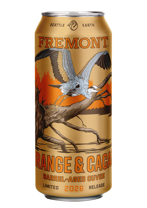 Orange & Cacao barrel-aged cuvee is the unique blend of an imperial oatmeal stout brewed with licorice, aged on cinnamon bark and then aged in 10-year-old bourbon barrels; and a unique imperial stout brewed exclusively for this cuvee. We then add the zest of many oranges and heaps of cacao nibs to bring you a chocolaty orange treat complemented by the seductive flavors of anise and cinnamon.